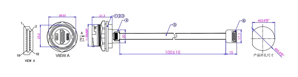 Пол: Женский, крепление сзади к R/A HDMI, Мужской, тип FFC