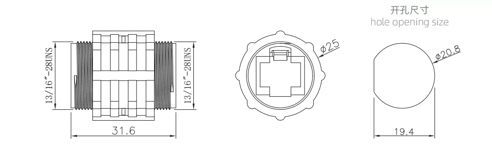 RJ45 гнездо реле (резьбовое) | 6А | E13T-FR6-PRR |