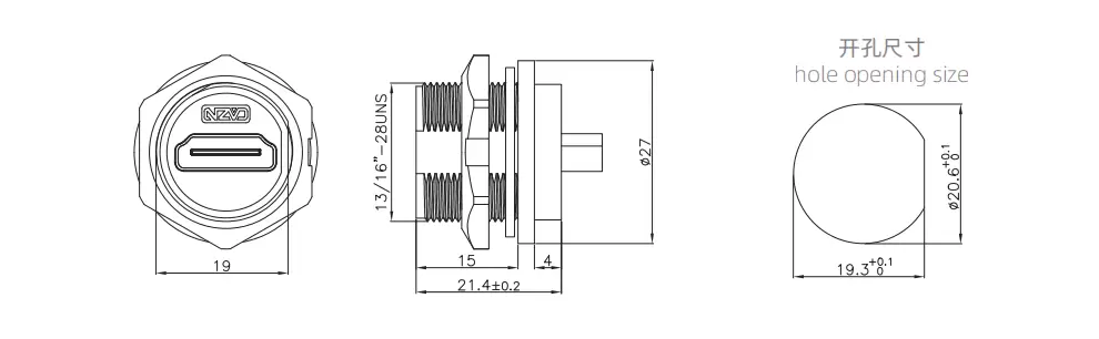 | Гнездо HDMI с креплением на задней панели (резьбовое) | HDMI2К | E13T-FH2-PRF |