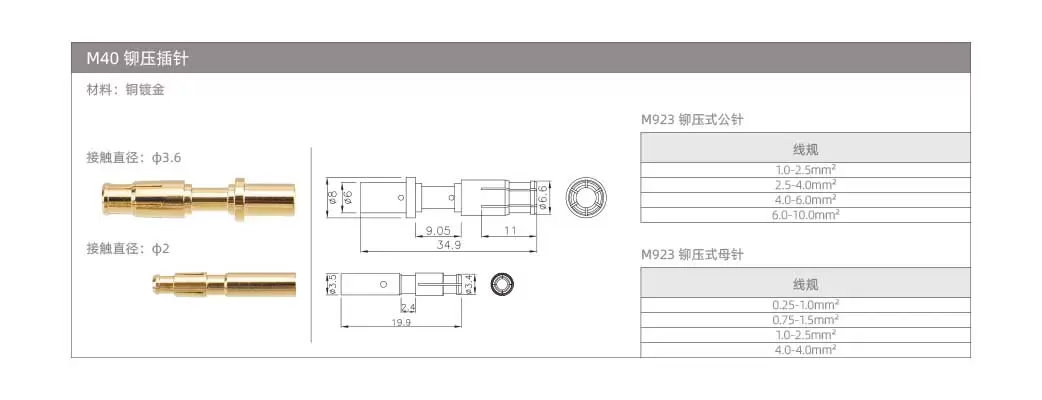 Разъем европейского стандарта серии M40 Тип конструкции: металлическая вилка Тип контакта: гнездовой Тип контактов: 6,8 контактов Способ подключения: обжим Экран: Да Сертификация: CE, RoHS, UL, Стандарт: IEC 61076-2-101