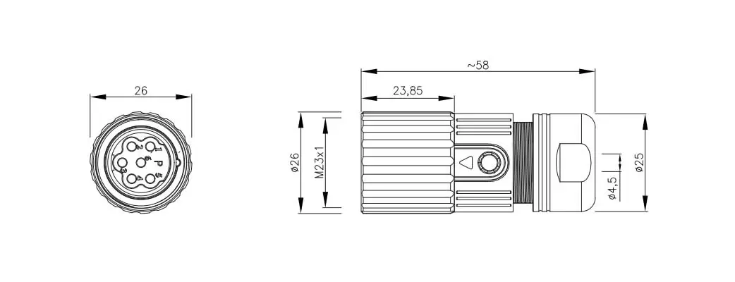 | M623 Сигнальная прямая розетка металлическая собранная вилка (обжимная) | М623-S6P-GCAP11 | M623-S6E-GCAP11 | 6-контактный | ||