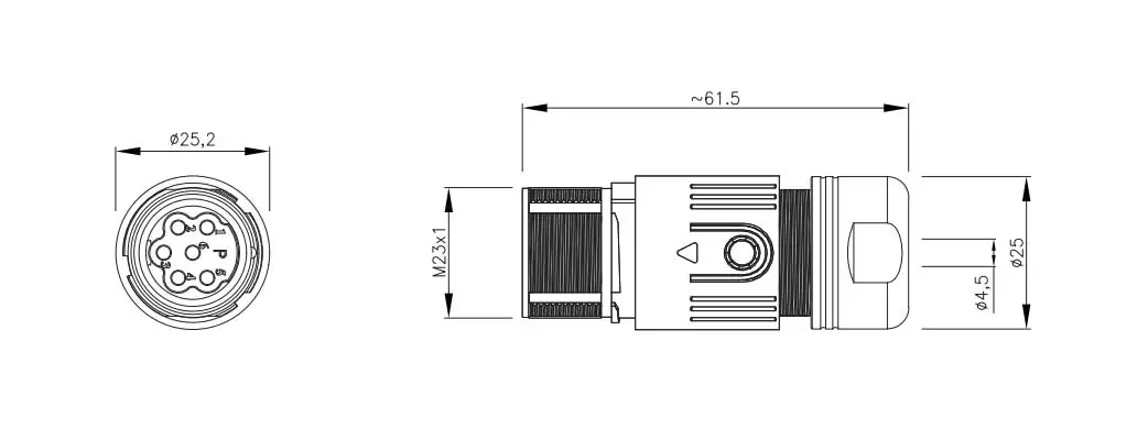 | M623 Сигнальная прямая ответная розетка металлическая собранная вилка (обжимная) | М623-С6П-ГСКП11 | M623-S6E-GCKP11 | 6-контактный | ||