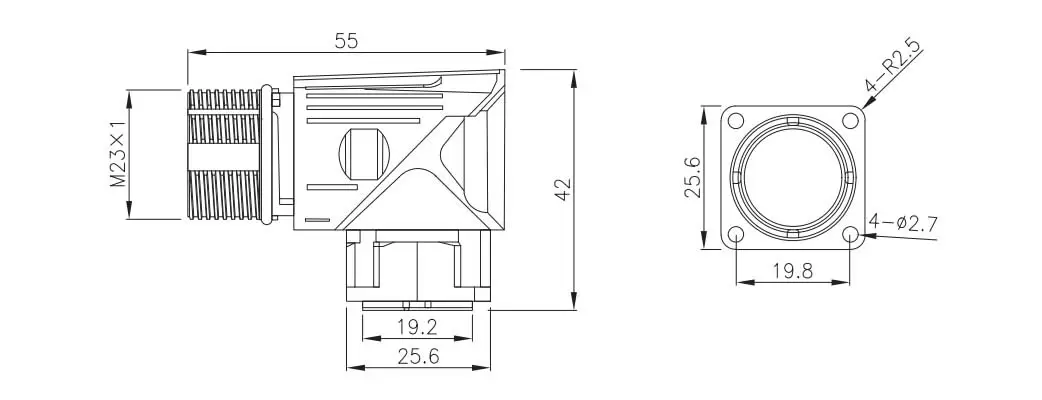 | Гнездо сигнальное угловое M623 (обжимное, монтажное отверстие 19,8x19,8) | M623-S17P- GCL | M623-S17E- GCL | 17-контактный |