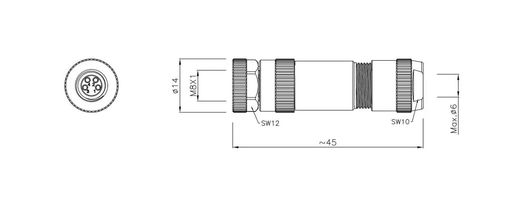 Разъемы европейского стандарта серии M8 Тип конструкции: Прямая вилка в металлической сборке Тип контакта: Гнездовой тип Количество контактов: 3, 4 контакта, Способ подключения: Винт Экран: Да Сертификация: CE, RoHS, UL, Стандарт: IEC 61076-2-104