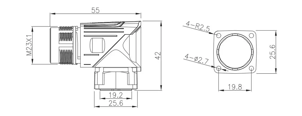 Тип конструкции: угловой квадратный фланцевый разъем