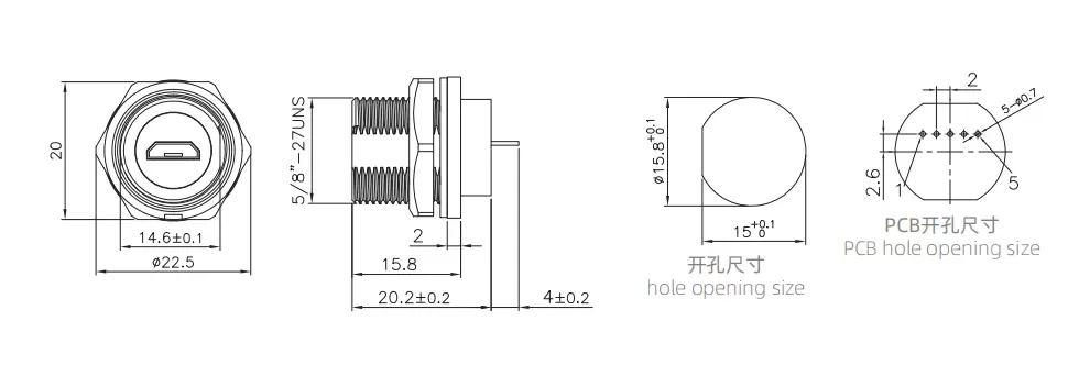 | Гнездо MICRO USB для монтажа на заднюю панель печатной платы (резьбовое) | E10T-FUM-PPF |