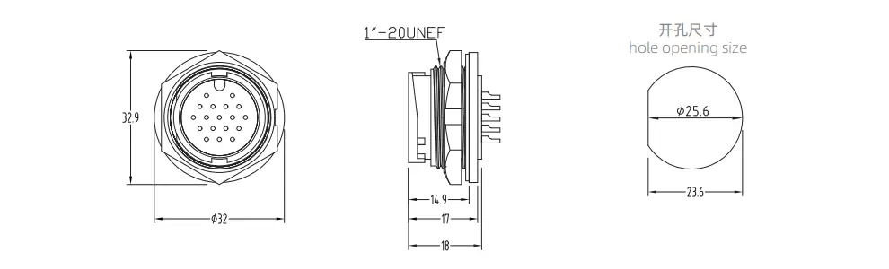 | E16 Мужской разъем для пайки сзади (байонетный) | 50В | 5А | E16B-P18-PWF | 18 | ||