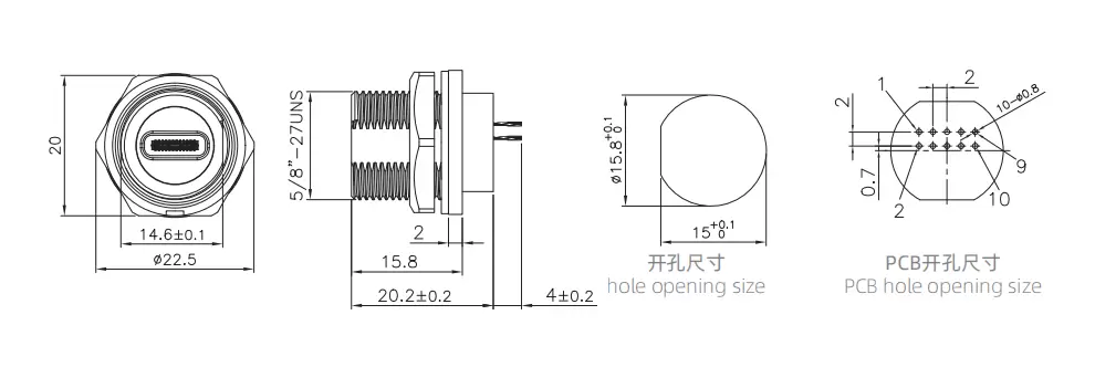 | Гнездо печатной платы типа C с задним креплением (резьбовое) | ТИП-С 3.0 | E10T-FT3-PPF |