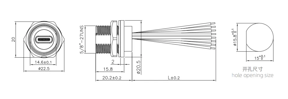 | Гнездо типа C с задним креплением, с проводом (резьбовое) | ТИП-С 3.0 | E10T-FT3-PWF-0.2PV |
