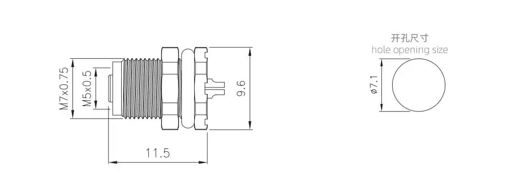 Гнездо M5 с задним креплением (печатная плата)