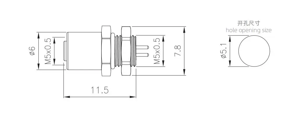 Гнездо M5 для фронтального монтажа (пайка, винт M5*0,5)