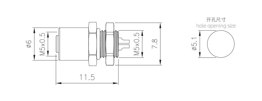 Гнездо M5 для фронтального монтажа (печатная плата)