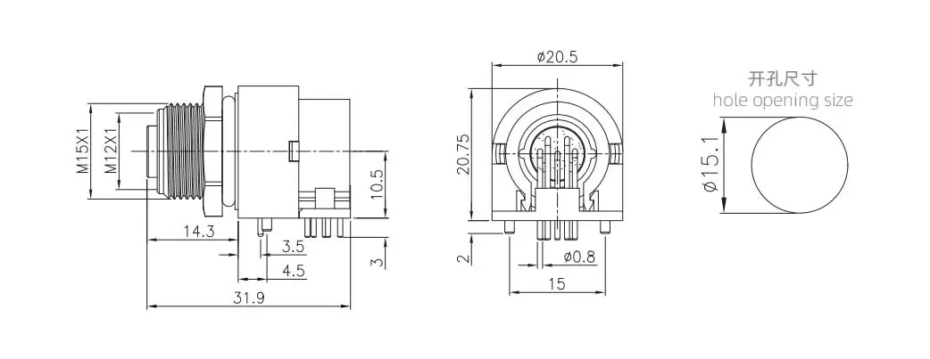 | М12 изогнутое отверстие (PCB, винт M15*1, большой объем) | M12-S8A-GPL M15-BS | 8а | ||