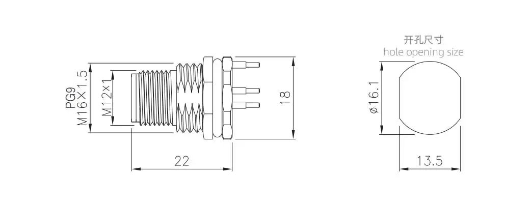 | Гнездо M12 с задним креплением (печатная плата, заземленный тип, большой винт) | М12-П3А-ГПФМ16-JD | М12-П3А-GPFP9-JD | 3А | ||