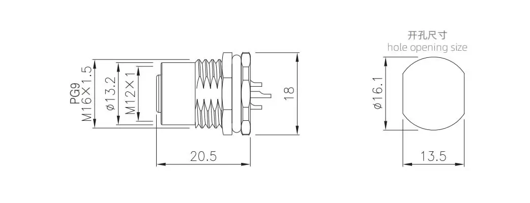 M12 Мужское заднее крепление (припоя, винт M15*1, пластиковый тип)