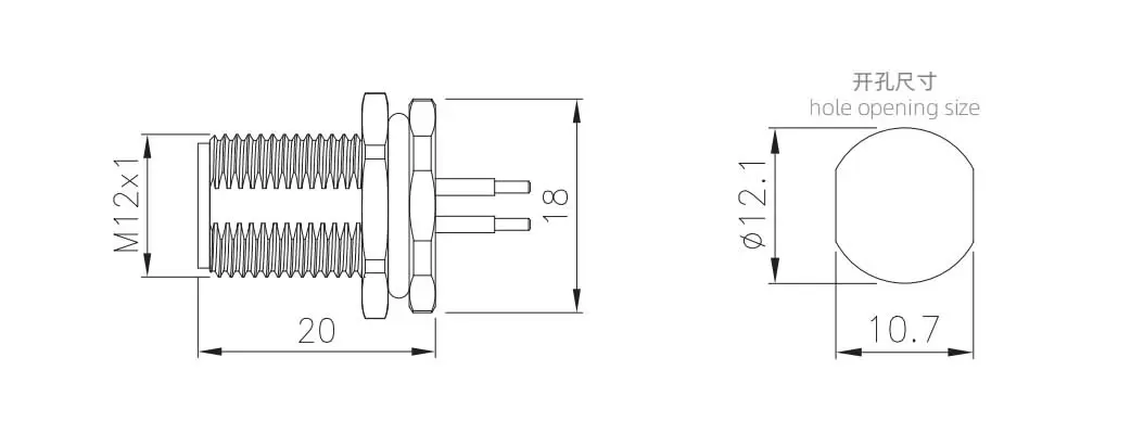 M12 Женское заднее крепление (припоя, винт M15*1, пластиковый тип)