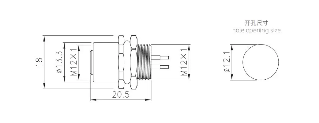 Корпус из цинкового сплава M12, гнездо для крепления на передней панели, винт под пайку M16*1,5/PG9