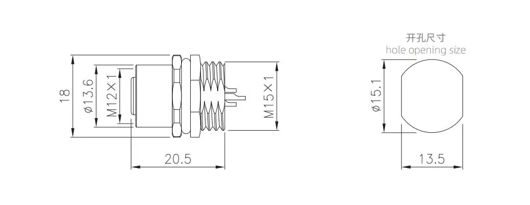 | Гнездо M12 с передним креплением (под пайку, пластиковое) | М12-С5Б-ПВБМ15 | 5Б | ||