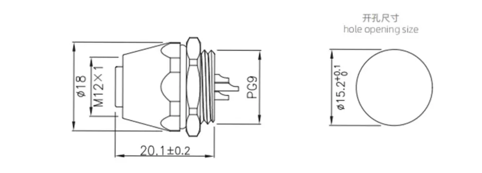 Корпус из цинкового сплава M12, гнездо для крепления на передней панели, винт под пайку M16*1,5/PG9