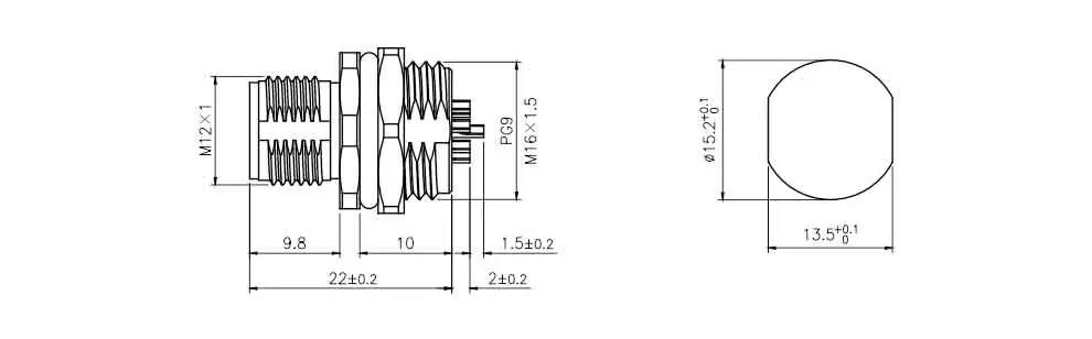 | Корпус из цинкового сплава M12, гнездо для крепления на передней панели (под пайку) | М12-П2А-ГВБМ16-ЗА | М12-П2А-ГВБП9-ЗА | 2А | ||