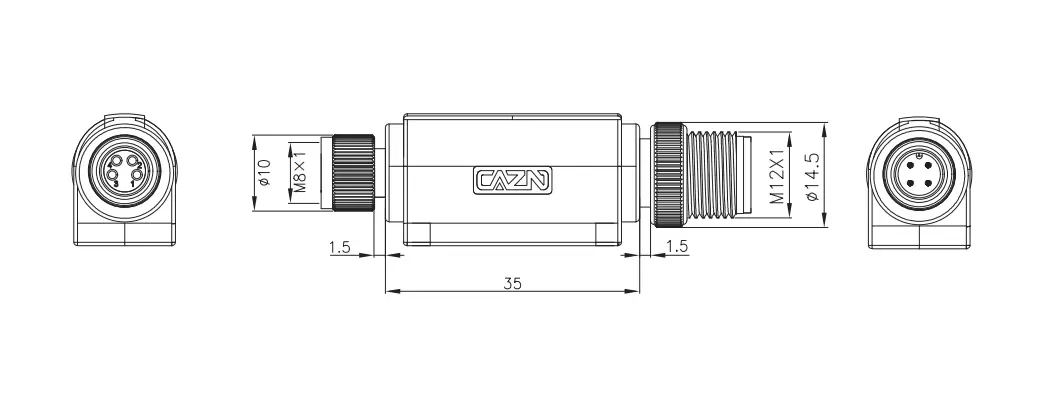 Тип булавки: от M12 до M8, от 1 мужчины до 1 женщины