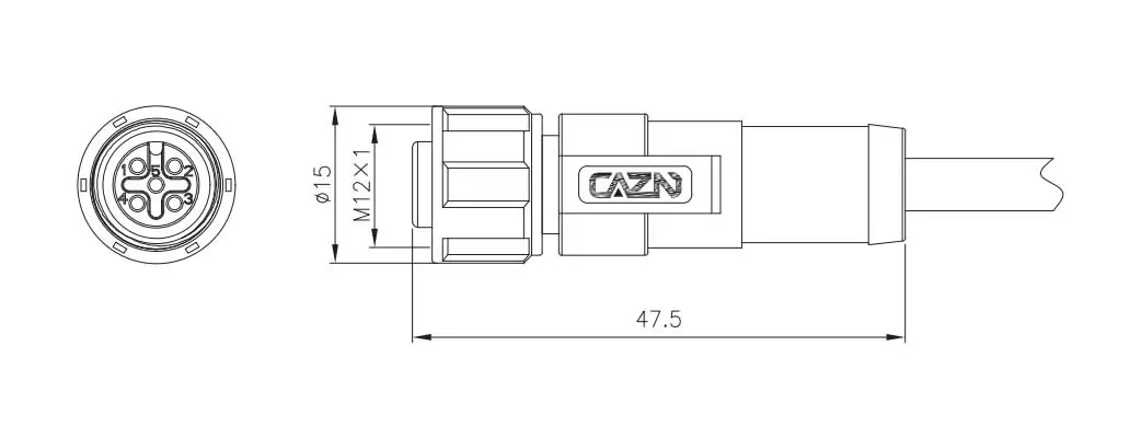 | M12 прямая розетка переформованная | M12-S4A-MWA-xxPV-PM | 4А | ||
