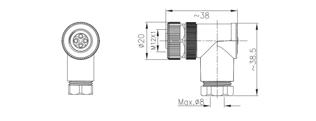 | M12 Угловая самок | M12-S4L-PLDP9-NP | 4L |