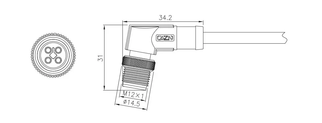 | M12 угловой переосмысленный заглушка (тип питания) | M12-P4L-MWD-XPV/XPU-NP | 4L |