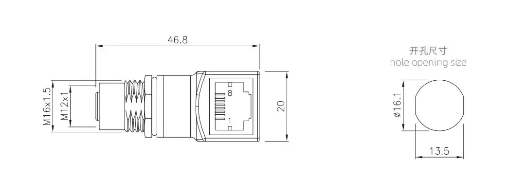 | M12 Угловая женщина к адаптеру RJ45 | M12-S8A-RJ45F8-DSCNY | 8а | ||