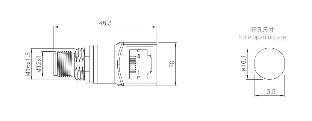 | M12 Угловой мужчина к RJ45 Адаптер | M12-P8A-RJ45F8-DSCNY | 8а | ||