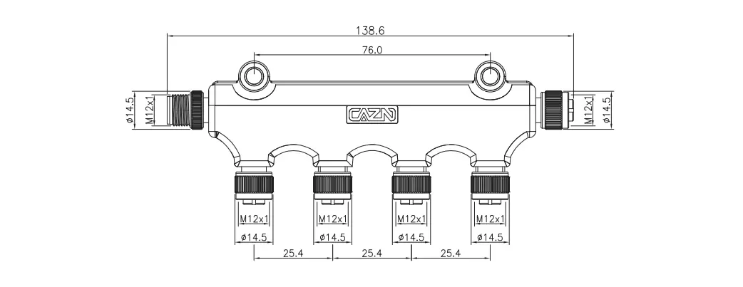 | Адаптер T-типа M12 (PSSSSS) | M12-P5A-S5AX5-TSCNY | 5A |