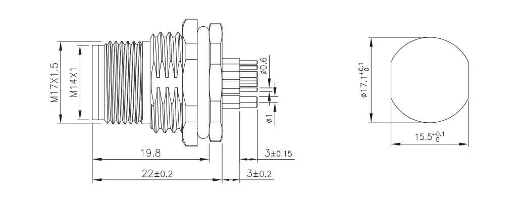 | M14 Мужское заднее крепление (PCB) Винт M17x0.5 | M14-P18-GPFM17 | 18pin |