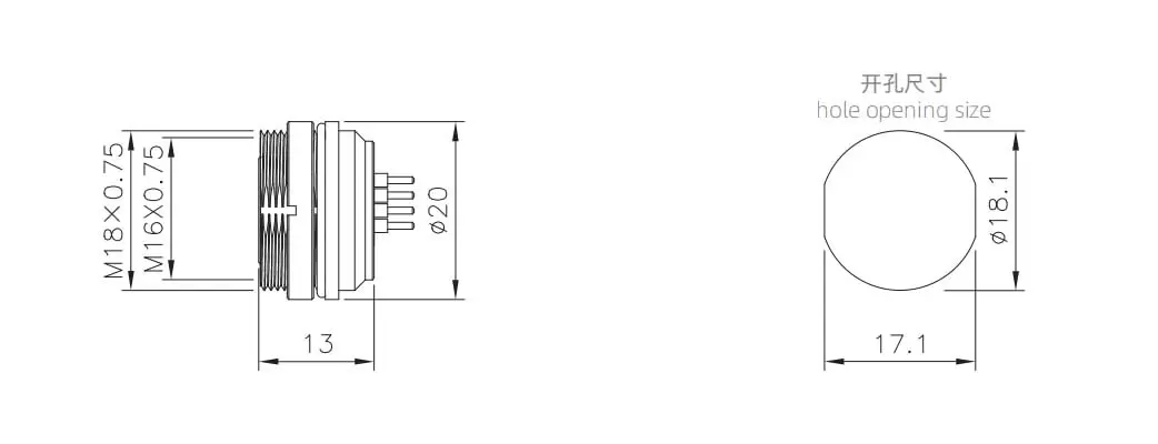 | M16 Женское спинное крепление (PCB) | M16-S3-GPFM18 | 3 PIN | ||