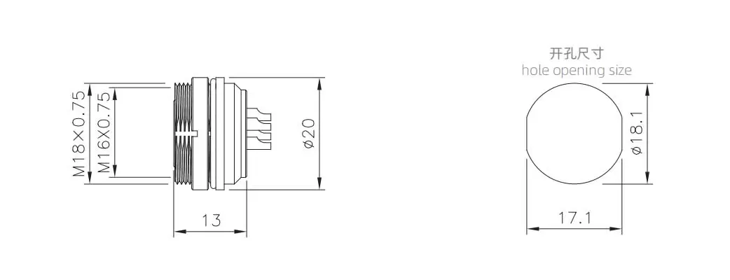 | M16 Женский задний гнездо (припоя) | M16-S3-GWFM18 | 3 PIN | ||