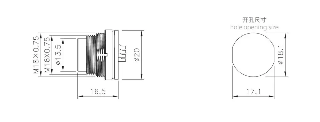 M16 Мужское заднее крепление (PCB, винт M18*0,75)