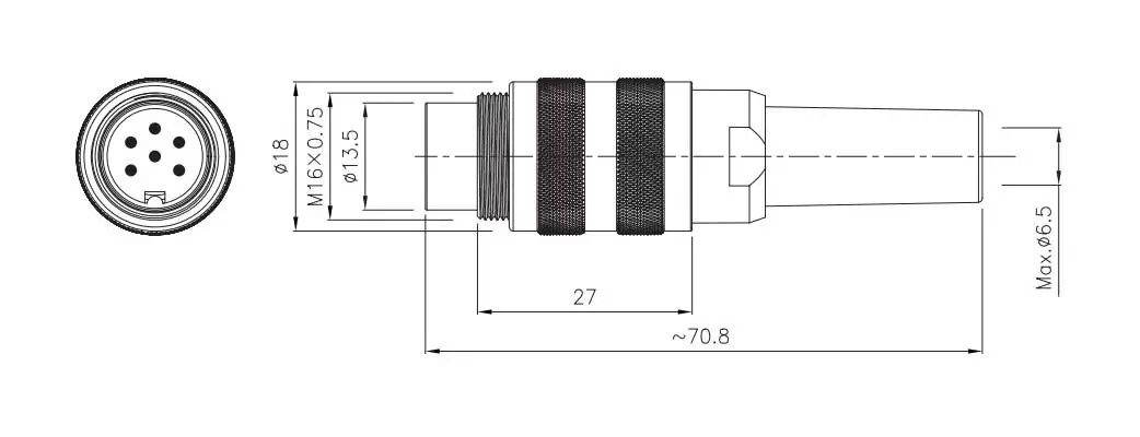 | Прямой штекер M16 в сборе (припой, пластиковая трубка) | М16-П6-ПВА05-ПТ | 6-контактный | ||
