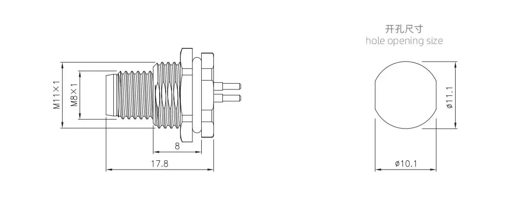 | Гнездо M8 с задним креплением ( печатная плата , винт M11*1) | M8-P8A- GPFM11 | 8-контактный A-код |