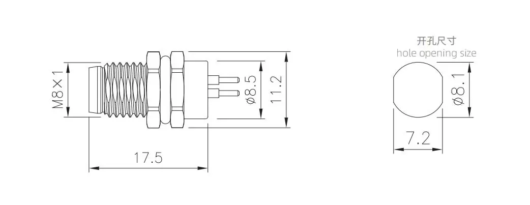 Гнездо M8 с задним креплением (печатная плата, винт M11*1)