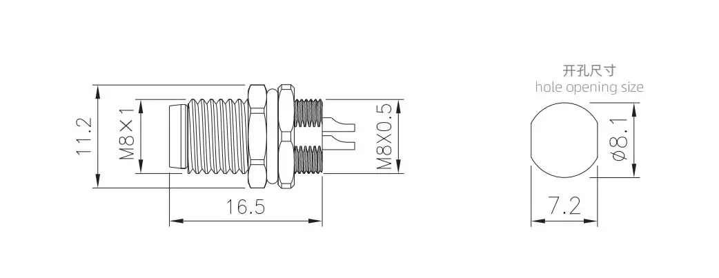 Гнездо M8 с передним креплением (печатная плата, винт M8*0,5)