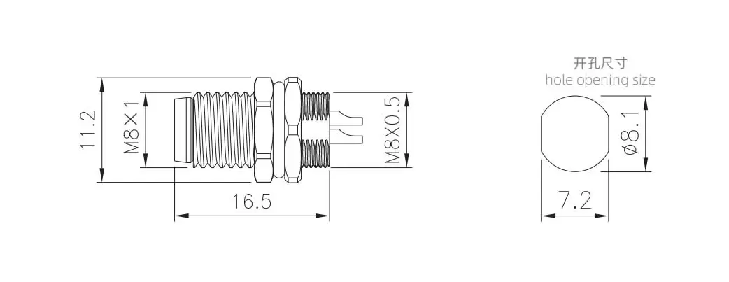 Гнездо M8 для фронтального монтажа (печатная плата, винт M8*0,5)