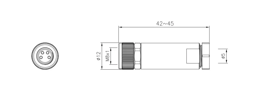| M8 прямая розетка металлическая сборная заглушка ( винтовой зажим ) | М8-С4А-ПЛА05 | 4-контактный А-код |