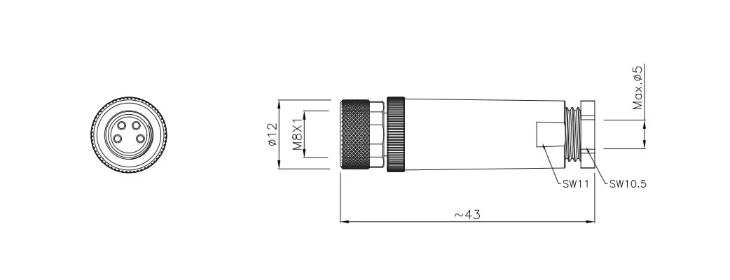 | M8 прямая розетка пластиковая собранная вилка 3A припой | М8-С3А-ПВА05 | 3-контактный А-код | ||