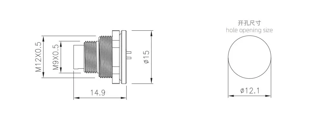 | M9 Мужской разъем для заднего монтажа (пайка) | М9-П2-ГВФМ12 | 2-контактный А-код | ||