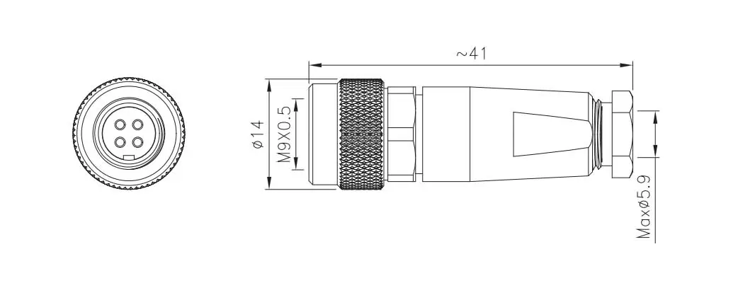 | M9 Прямой женский металлический штекер (под пайку) | М9-С4-ГВА05 | 4-контактный А-код | ||
