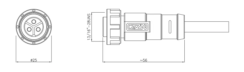 | E13 Прямой охватывающий штекер (резьбовой) | 125В | 20А | E13T-S3-MWA-xPV | 3 | ||