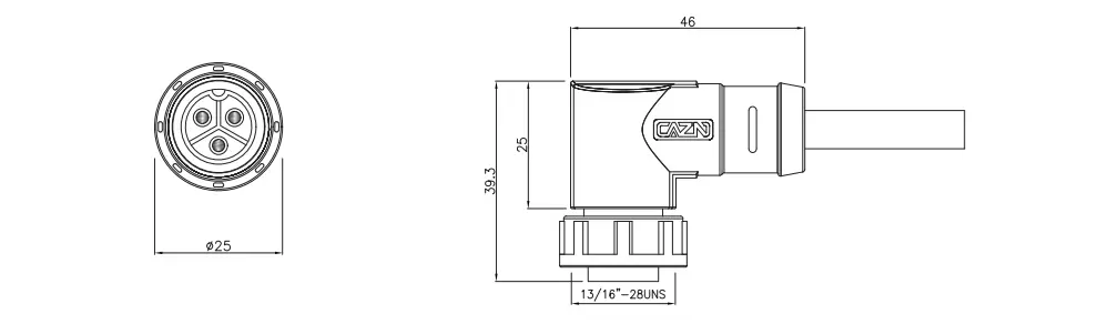 | Угловая заглушка E13 с наружной резьбой (резьбовая) | 60В | 5А | E13T-P14-MWD-xPV | 14 | ||