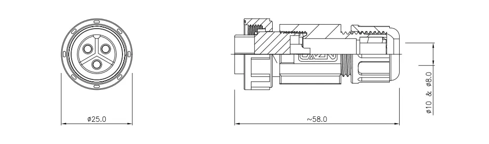 | E13 Прямой гнездовой разъем для сборки (резьбовой) | 125В | 20А | E13T-S3-PWA08 | 3 | ||