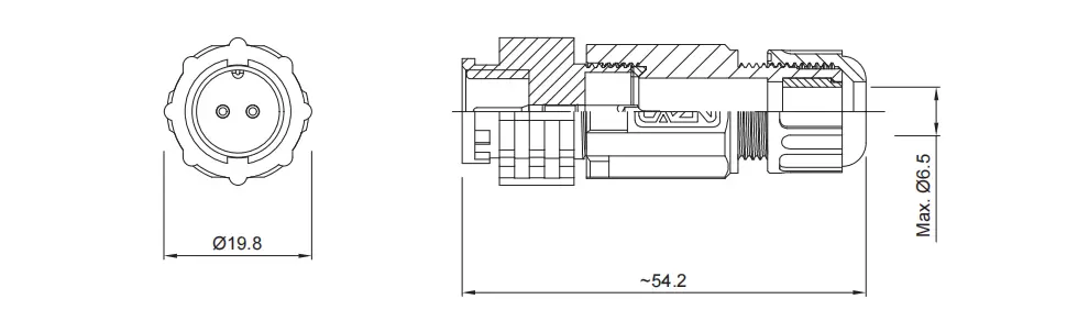 | E10 Прямой штекерный разъем для установки в полевых условиях (байонетный) | 60В | 5А | E10B-P8-PWK06 | 8 | ||