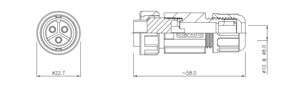| E13 Прямой гнездовой разъем для сборки ( байонетный ) | 60В | 5А | E13B-S8-PWA08 | 8 | ||