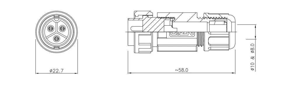 | E13 Прямой штекерный разъем ( байонетный ) | 60В | 5А | E13B-P10-PWA08 | 10 | ||